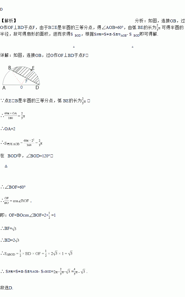 如图,以AD为直径的半圆经过点E、B,点E、B是半圆的三等分点,弧 BE的长为