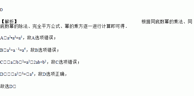 C. (a﹣b)2=a2﹣ab+b2 D. (﹣a2)3=﹣a6