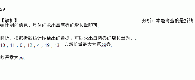 从1984年起,我国参加了多届夏季奥运会,取得了骄人的成绩.如图是根据第23届至30届夏季奥运会我国获得的金牌数绘制的折线统计图,观察统计图可得:与上一届相比增长量最大的是第______届夏季奥运会.