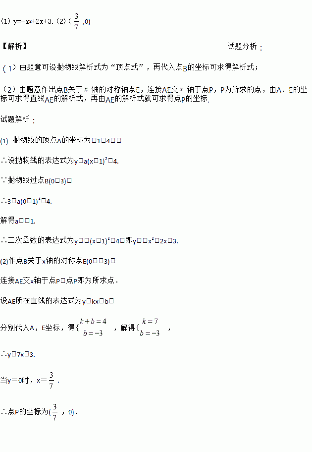 如图,已知抛物线的顶点为A(1,4),抛物线与y轴交于点B(0,3),与x轴交于C、D两点.点P是x轴上的一个动点.
