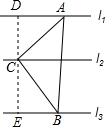 解:过点C作CD⊥l1于点D,反向延长CD交l3于点E,