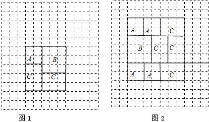 ①选取A型、B型两种图片各1块,C型图片2块,在下面的图中拼成一个正方形;