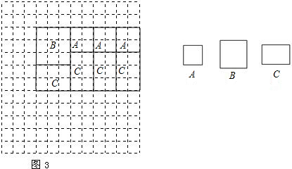 ③选取A型3块,B型图片1块,再选取若干块C型图片,在下面的图中拼成一个矩形.