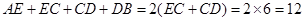 如图所示,点D、E分别为线段CB、AC的中点,若ED=6,求线段AB的长度.