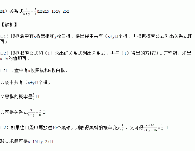 盒中有x枚黑棋和y枚白棋,这些棋除颜色外无其他差别.