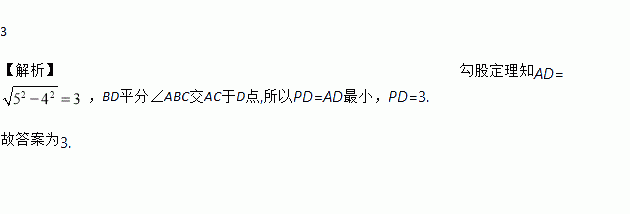 如图,在Rt△ABC中,∠A=90°,BD平分∠ABC交AC于D点,AB=4,BD=5,点P是线段BC上的一动点,则PD的最小值是________ .