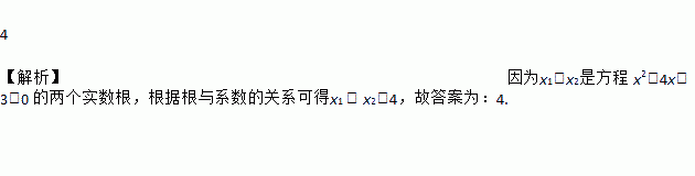 已知 x1,x2是方程 x2-4x+3=0 的两个实数根,则x1 + x2= .