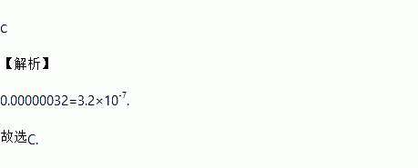 生物学家发现了一种病毒,其长度约为0.00000032 mm,数据0.00000032用科学记数法表示正确的是( )