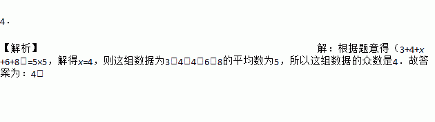 若一组数据3,4,x,6,8的平均数为5,则这组数据的众数是______.