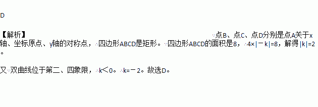 如图,点A是双曲线在第二象限分支上的任意一点,点B、点C、点D分别是点A关于x轴、坐标原点、y轴的对称点.若四边形ABCD的面积是8,则k的值为( )