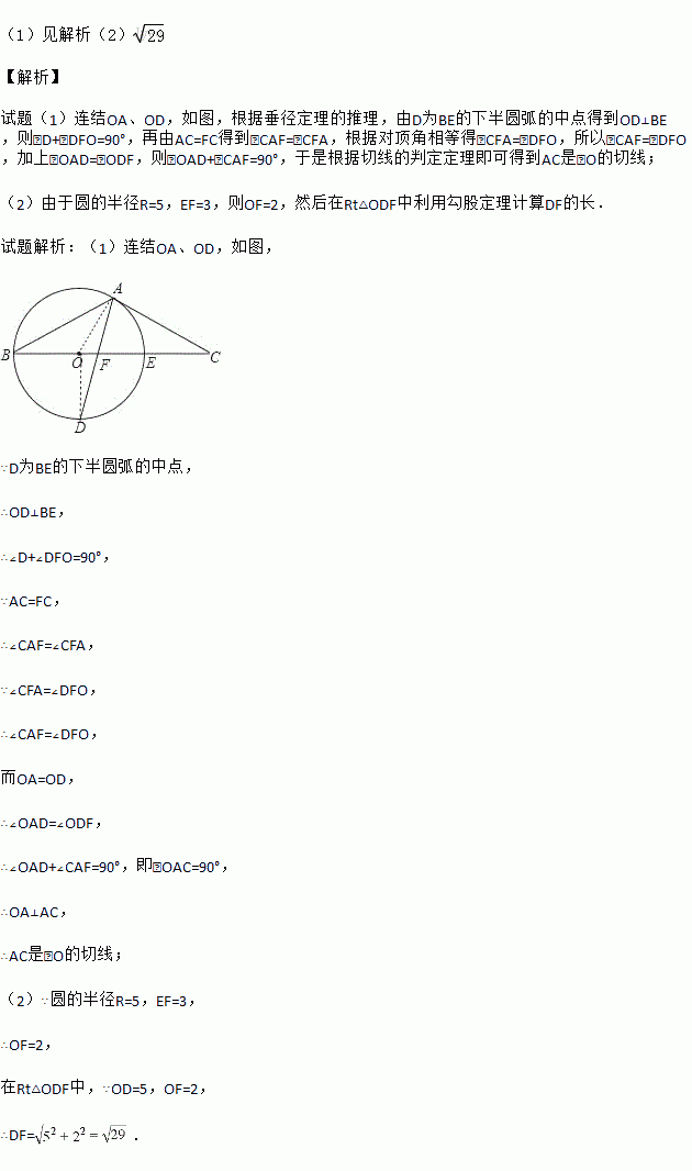 如图,以△ABC的BC边上一点O为圆心的圆,经过A,B两点,且与BC边交于点E,D为BE的下半圆弧的中点,连接AD交BC于F,AC=FC.