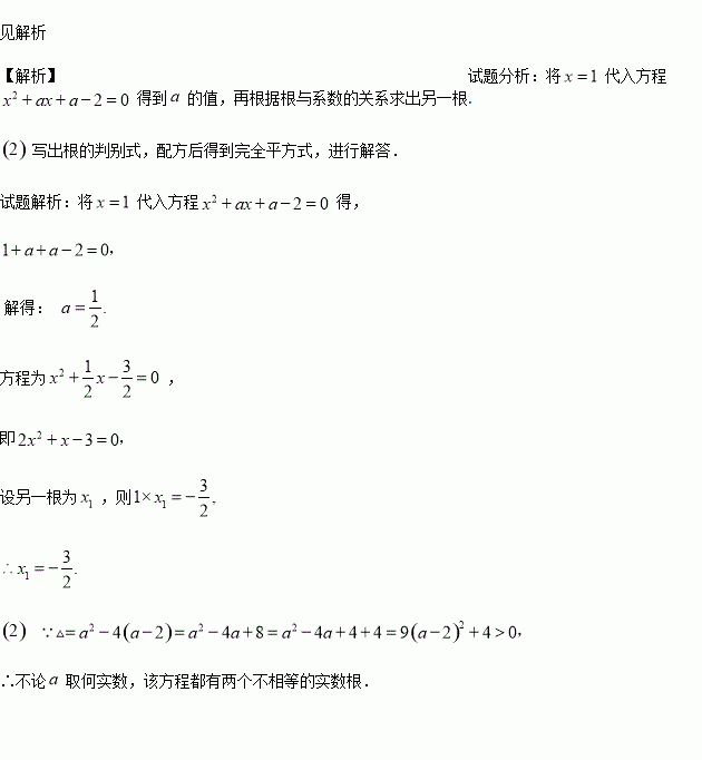 (1)当该方程的一个根为1时,求a的值及该方程的另一根;