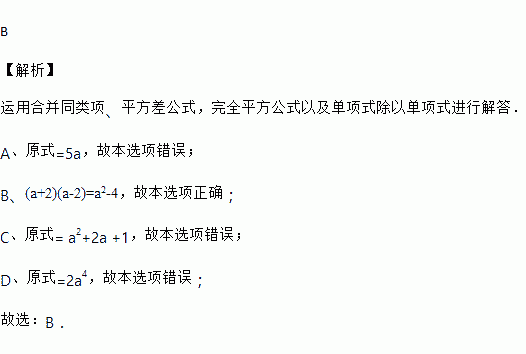 A. 3a+2a=5a2 B. (a+2)(a-2)=a2-4