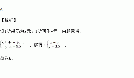 如图,小刚手拿20元钱正在和售货员对话,请你仔细看图,1听果奶、1听可乐的价格分别是( )
