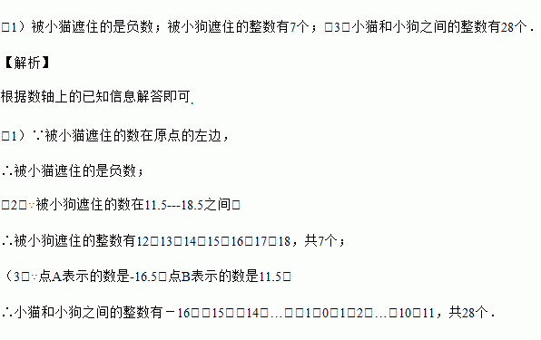 如图,上七年级的小贝在一张纸上画了一条数轴,妹妹不知道它有什么用处,就在上面画了一只小猫和一只小狗,于是数轴上标的数字有的看不到了,请根据数轴回答下列问题: