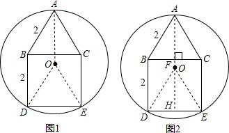 已知多边形ABDEC是由边长为2的等边三角形ABC和正方形BDEC组成,一圆过A、D、E三点,求该圆半径的长.