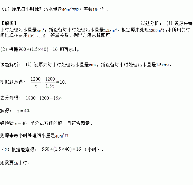 为响应珠海环保城市建设,我市某污水处理公司不断改进污水处理设备,新设备每小时处理污水量是原系统的1.5倍,原来处理1200m3污水所用的时间比现在多用10小时.