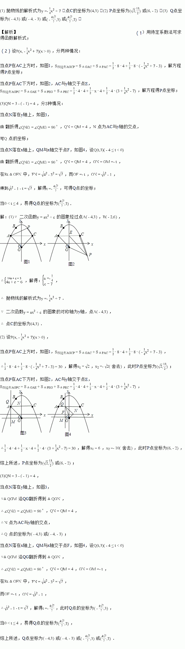 若Q为线段AC上一动点,过点Q平行于y轴的直线与过点G平行于x轴的直线交于点M,将沿QG翻折得到,当点N在坐标轴上时,求Q点的坐标.