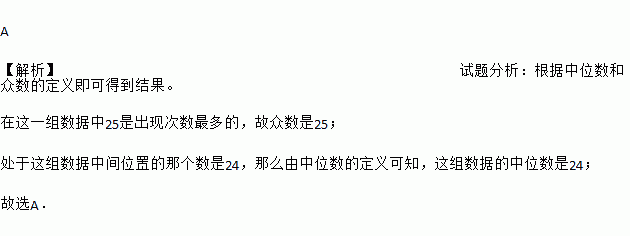 A. 24,25 B. 24.5,25 C. 25,24 D. 23.5,24