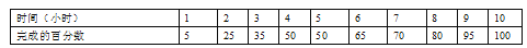 小华粉刷他的卧室共花去10小时,他记录的完成工作量的百分数如下: