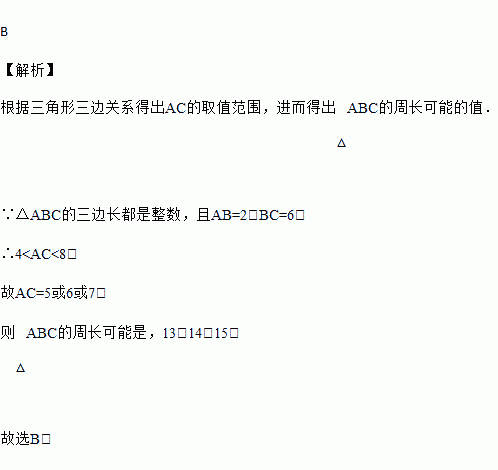 已知△ABC的三边长都是整数,且AB=2,BC=6,则△ABC的周长可能是( )