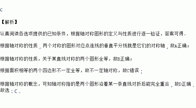 C. 面积相等的两个四边形对称