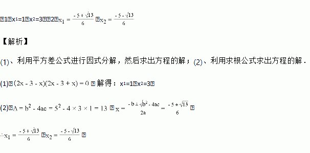 (1) (2x-3)2-x2=0 (2)3x2+5x+1=0
