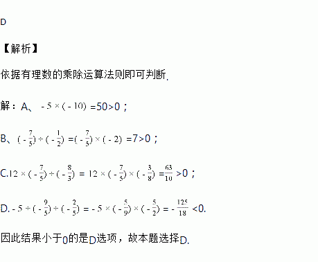 观察下列各式,结果小于0的是( )
