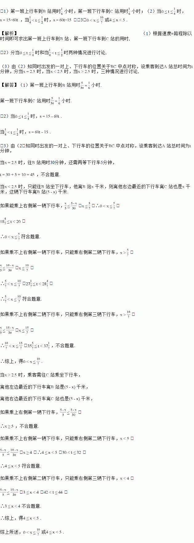 站同时发一班车,乘客只能到站点上、下车(上、下车的时间忽略不计),上行车、下行车的速度均为30千米/小时.![]()