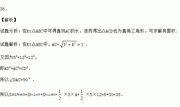 如图,AB=4,BC=3,CD=13,AD=12,∠B=90°,求四边形ABCD的面积.