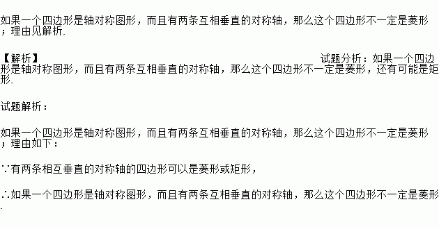 如果一个四边形是轴对称图形,而且有两条互相垂直的对称轴,那么这个四边形一定是菱形吗?为什么?