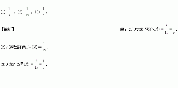 在一袋子里装有红、黄、蓝3种颜色的小球,其形状、大小、质量、质地等完全相同,每种颜色的小球各5个,且分别标有数字1,2,3,4,5.现从中摸出一球: