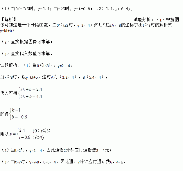 (2)通话2分钟应付通话费多少元?通话7分钟呢?