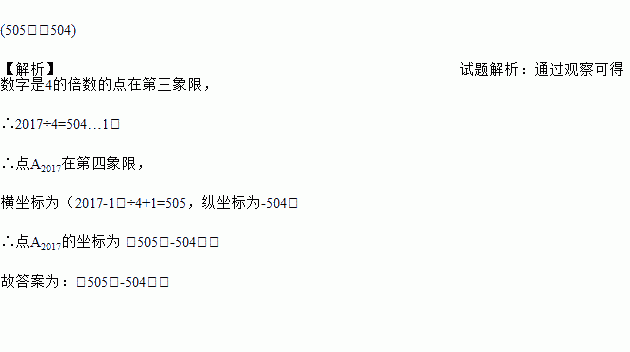 如图,已知A1(1,0),A2(1,1),A3(-1,1),A4(-1,-1),A5(2,-1),…,则点A2 017的坐标为______________.