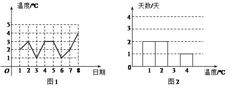 图1是某城市四月份1至8日的日最高气温随时间变化的折线统计图,小刚根据图1将数据统计整理后制成了图2.