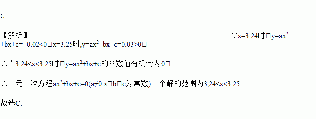 判断方程ax2+bx+c=0(a≠0,a,b,c为常数)的一个解x的范围是( )