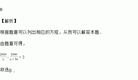 施工队要铺设一段全长2000米的管道,因在中考期间需停工两天,实际每天施工需比原来计划多50米,才能按时完成任务,求原计划每天施工多少米设原计划每天施工x米,则根据题意所列方程正确的是![]()