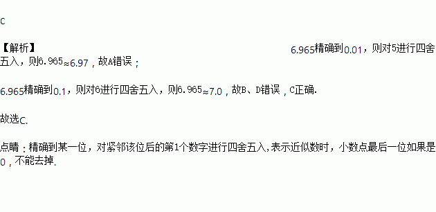 把6.965四舍五入取近似值,下列说法正确的是( )