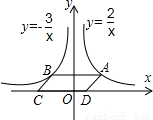 如图,点A是反比例函数y= (x>0)的图象上任意一点,AB//x轴,交反比例函数y=-的图象于点B,以AB为边作?ABCD,其中C、D在x轴上,则S?ABCD为( )