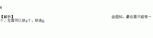 B 【解析】由图知,最右面只能有一个,左面可以放4个,故选B.