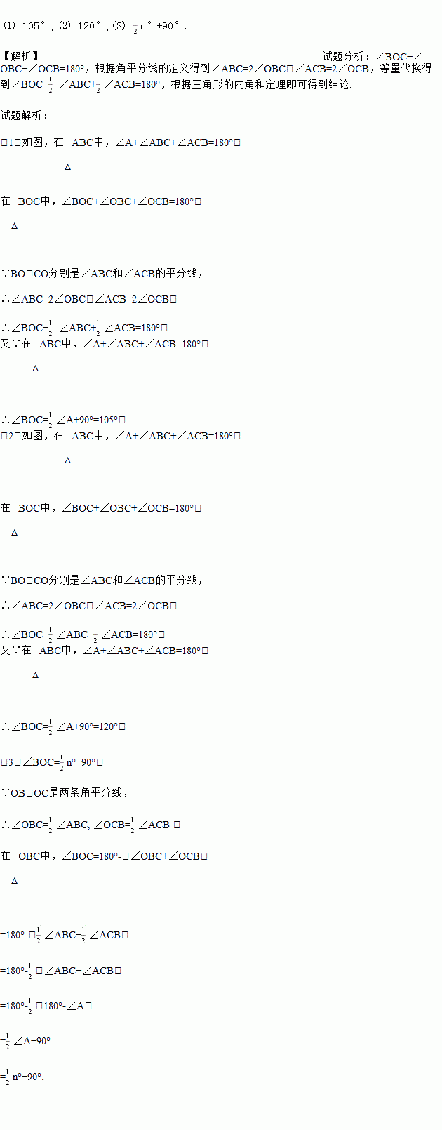 (3)若∠A=n°,则∠BOC的大小是多少?试用学过的知识说明理由.