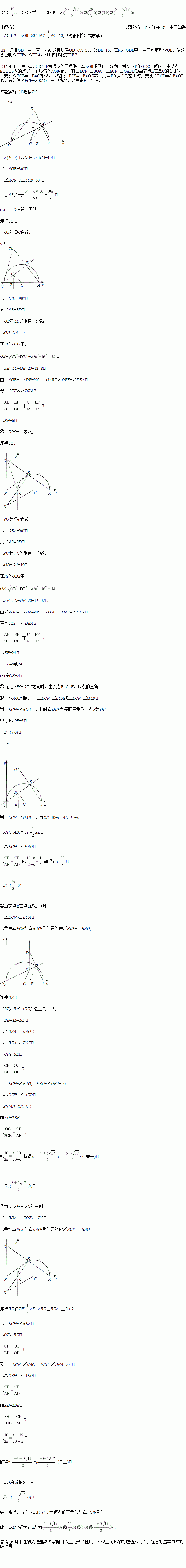 如图,在平面直角坐标系中,点A(20,0),以OA为直径在第一象限内作半圆C,点B是该半圆周上一动点,连结OB、AB,并延长AB至点D,使DB=AB,过点D作x轴垂线,分别交x轴、直线OB于点E、F,点E为垂足,连结CF.