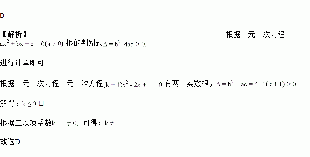 关于的一元二次方程有两个实数根,则的取值范围是( )