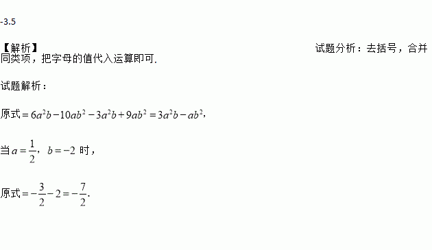 先化简:2(3a2b﹣5ab2)﹣3(a2b﹣3ab2),再求值.其中a=,b=﹣2.