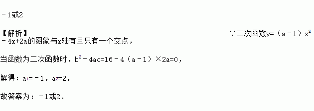 若二次函数y=(a﹣1)x2﹣4x+2a(a≠1)的图象与x轴有且只有一个交点,则a的值为_____.