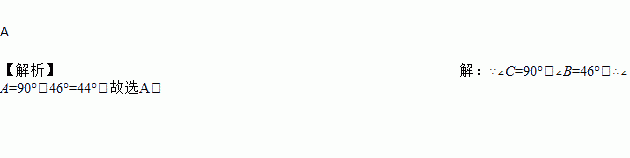 Rt△ABC中,∠C=90°,∠B=46°,则∠A=( )