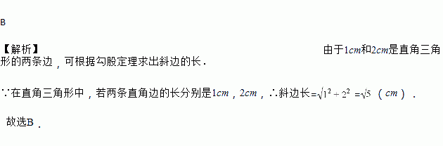 在直角三角形中,若两条直角边的长分别是1cm,2cm,则斜边的长( )cm.