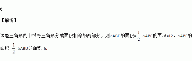 如图△ABC中,AD是BC上的中线,BE是△ABD中AD边上的中线,若△ABC的面积是24,则△ABE的面积是________.