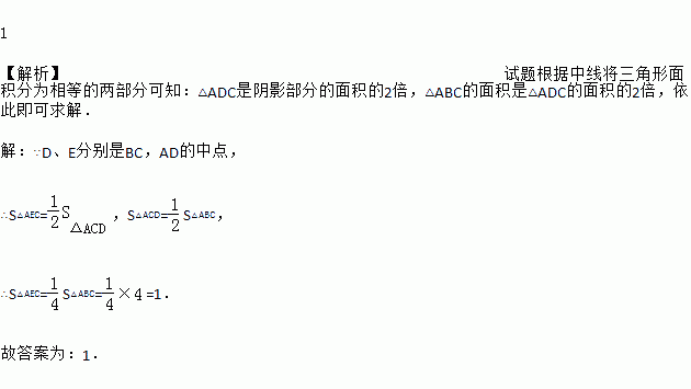 △ABC中,D,E分别是BC,AD的中点,且△ABC的面积为4,则阴影部分的面积是_____.
