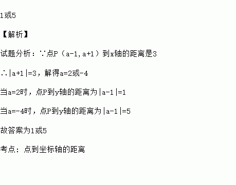 若点P(a-1,a+1)到x轴的距离是3,则它到y轴的距离为 .